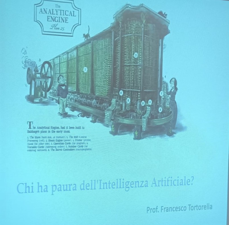 Il Professore Tortorella, nel presentarsi, ha ringraziato per l’opportunità concessagli e, dopo una interessante premessa sull’argomento con l’illustrazione dei dati storici sulle origini degli studi sulla Intelligenza Artificiale, è entrato nel vivo dell’intervento illustrando, con dovizia di particolari nonché chiarezza e semplicità di linguaggio le risorse ma anche i problemi che l‘Intelligenza Artificiale può presentare. Un argomento complesso che il prof. Tortorella ha presentato in modo facile e coinvolgente grazie anche alla sua pluriennale esperienza di docente, nonché ricercatore universitario.